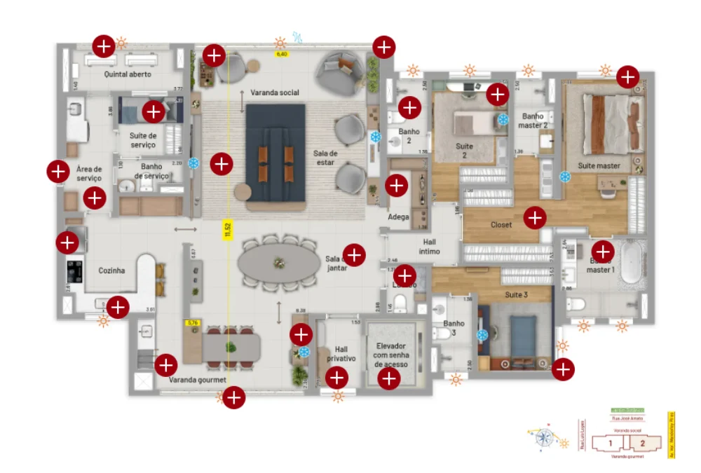 Porte-cochère, em francês, significa “portão da carruagem”. Um elemento arquitetônico criado, no fim do século XIX, para que os passageiros das carruagens desembarcassem abrigados do mau tempo. Desde então, foi implementado como item de elegância em mansões e hotéis de luxo. Por ser um prédio de muita classe, o Epic Jundiaí terá um belo porte-cochère em frente à portaria, onde a van escolar, por exemplo, embarcará e desembarcará as crianças em espaço coberto e seguro.